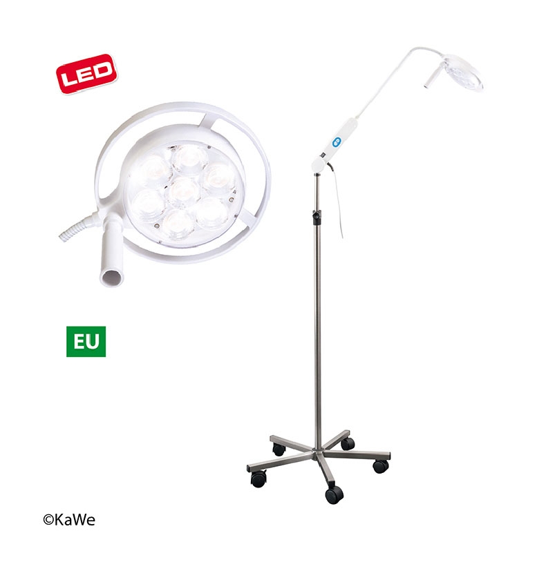 - with 5 foot, mobile floor stand made of high-quality stainless steel